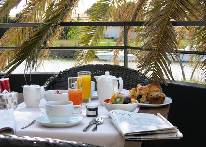Servi côté canal, en salons en hiver et en terrasse ombragée au printemps / été (mi mai / mi septembre).